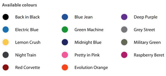 | Colours | Over 20 shroud colours available |