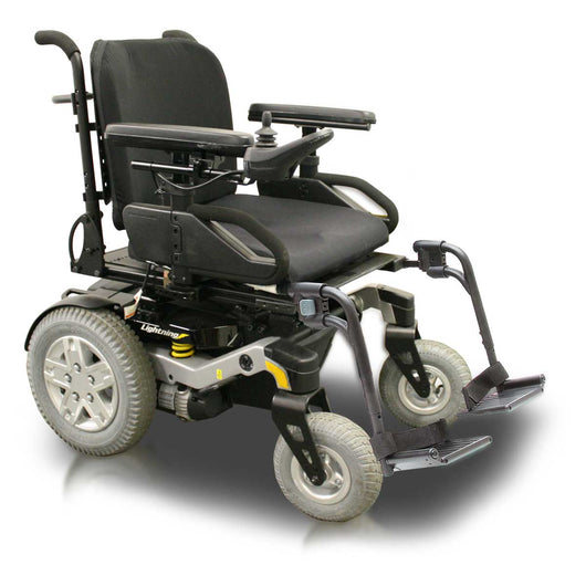 The Quantum Lightning electric wheelchair is a rear wheel drive and features a high forward pivot long trail arm, a state-of-the-art design that provides dramatically improved obstacle climbing performance and a smoother ride. It also provides outstanding tight space manoeuvrability, a sliding battery tray for easy access and accepts rehab seating and electronics. With its stylish, sleek design and a standard speed of up to 4 mph (6.4 km/h), the Lightning is a superior power chair for even the most active clients.