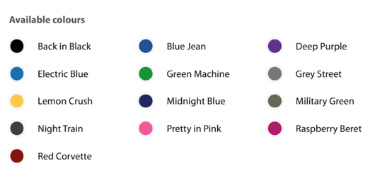| Colours | Over 20 shroud colours available |